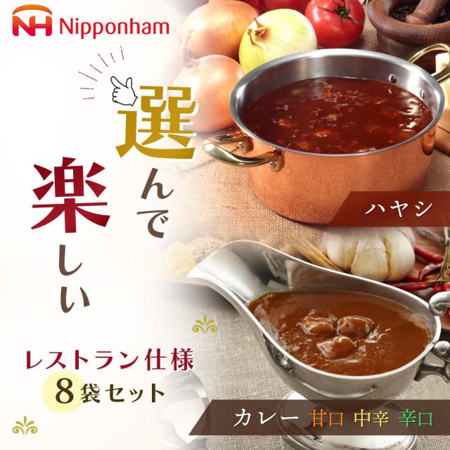 レトルト食品 詰め合わせ 常温 レストラン仕様 4種類から 選べる レトルト カレー ハヤシ 8袋 セット 【 送料無料 沖縄以外】 日本ハム レトルトカレー 甘口 中辛 辛口 ハヤシライス まとめ買い 仕送り 食品 お年賀 2026 帰省 お土産 ギフト