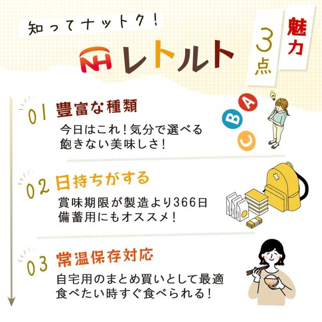 忙しい時やご飯を作るのが面倒な時に役立つ 簡単 便利 な 時短 レトルト食品 です。