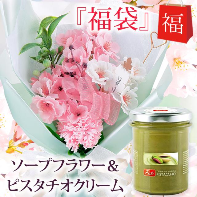 人気の桜のソープフラワーに、イタリア産高級ピスタチオクリームをセットした福袋!