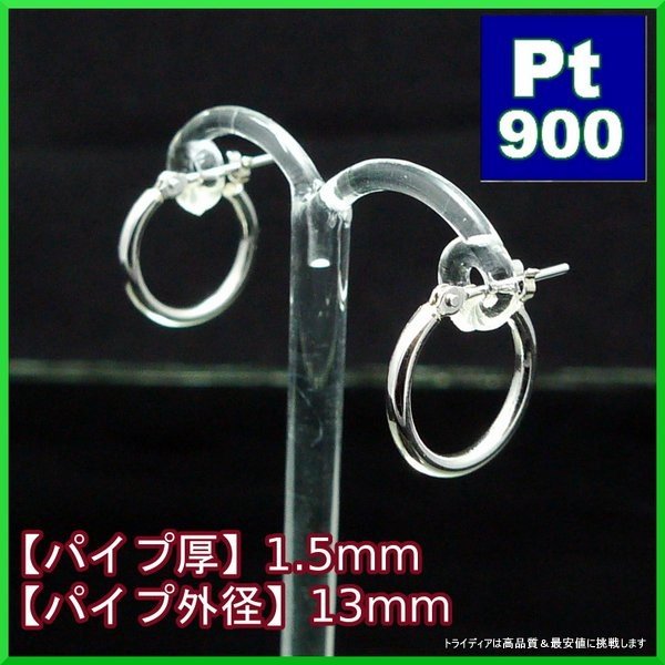 プラチナ Pt900 フープピアス 小さめ 国産 幅1.5mm 外径13mm 両耳 1ペア 2個 レディース メンズ リング パイプ ピアス
