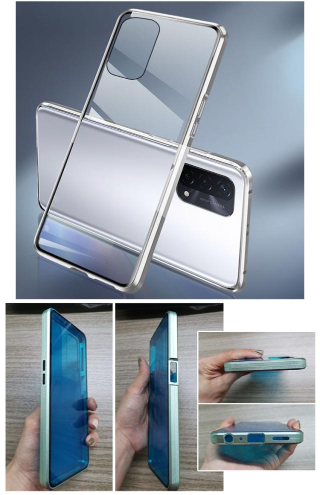 OPPO A54 5G (OPG02) ケース アルミバンパー クリア 透明 両面 前後 強化ガラス 液晶保護 マグネット かっこいい メタルサイドバンパー カバー オッポ A54 5G 保護カバー おすすめ おしゃれ スマートフォンケース カバー