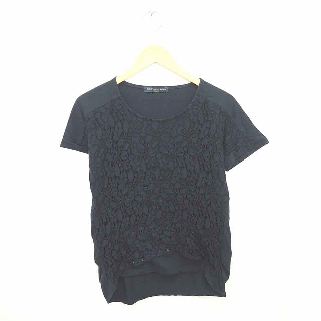 【中古】ハニーサックルローズ Honeysuckle Rose カットソー Tシャツ 丸首 レース 総柄 半袖 M 紺 ネイビー /TT22