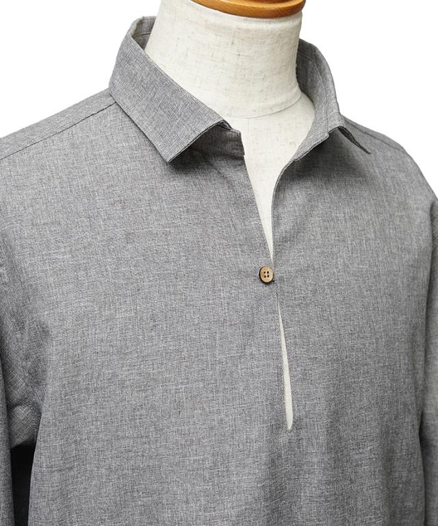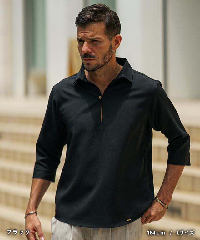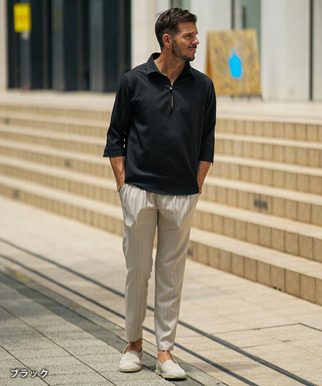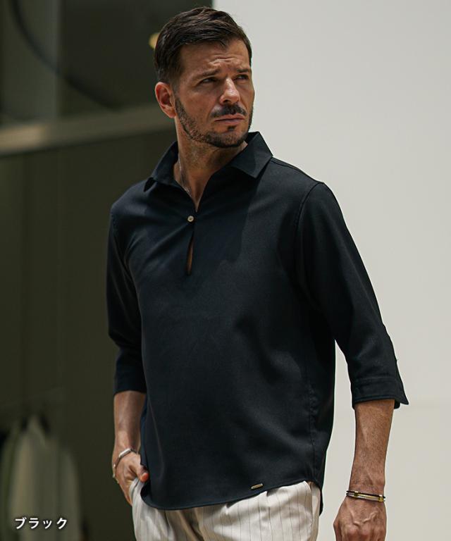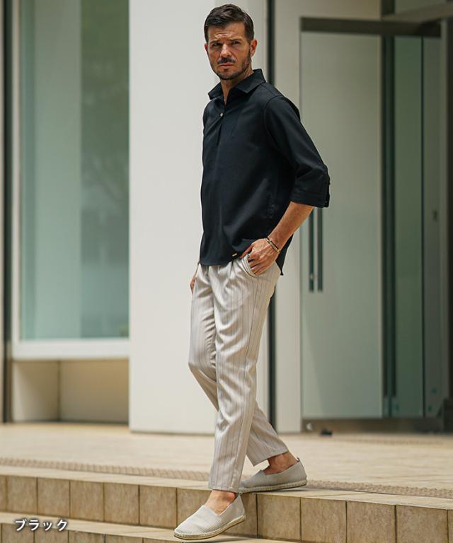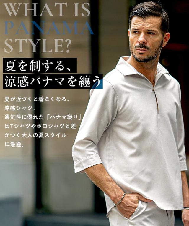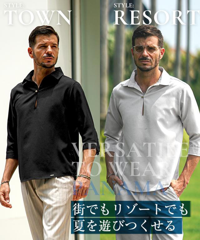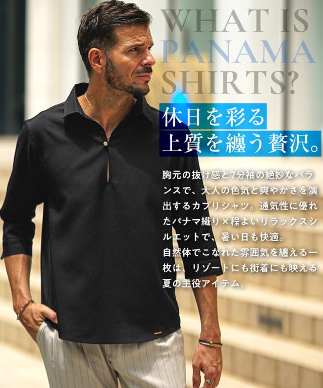 『綿パナマ7分袖カプリシャツ』7分袖が爽やかさを加速させるカプリシャツ。【あの人を落とす大人の余裕】余裕を感じる大人の男に、女性は目がない。ゆったりとしたサイズ感、サラリとした綿100%の生地が、リラックスした着心地と、それ以上に見た目の余裕、爽やかな表情を出す仕上がりに。また、ザックリと開いた胸元や7分丈の袖が、男らしさを感じる部位を露出させ、嫌味なく色気を出す。大人の余裕を感じるセットアップで、大切な人と上質な休日を。※こちらはカプリシャツ単品の販売ページになります。