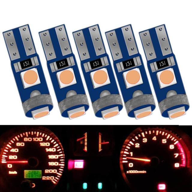 【T5 LED レッド 5個】最先端超高発光効率の3030LED素子3個搭載、360°全方位照射でき、 大部分車種はエラーフリー、12V 車用T5バルブ 5個セット。