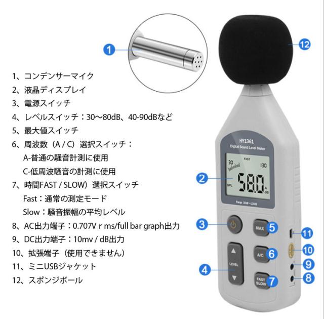 FASTモード:通常の測定モード。SLOWモード:騒音振幅の平均レベル
