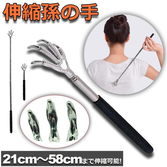 孫の手 伸縮 まごのて 伸びる孫の手 背中かき棒 ステンレス製 おしゃれ 携帯便利