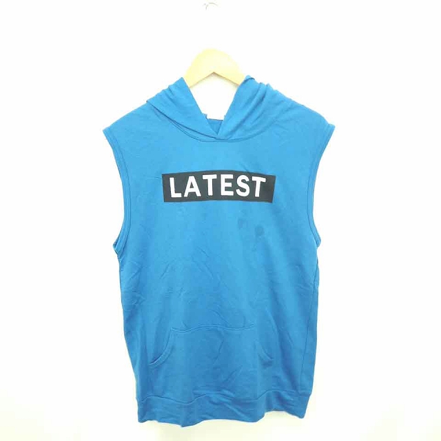 【中古】コルザ COLZA パーカー プルオーバー 英字 プリント ノースリーブ M 青 ブルー /TT23 レディース