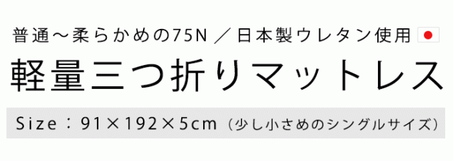 マットレス ※2枚セット※ 日本製 三つ折り 厚み約5cm シングル 91×192cm 普通〜柔らかめ 90ニュートン 3つ折 【大型便S】 ※同梱不可
