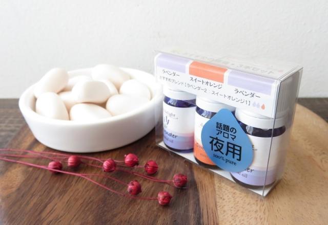 3本のエッセンシャルオイルを1セットでお届けします。香りのセットはTVで話題の香り昼用と夜用の2種類。一日の始まり等の時間ごとや気分によって、好きな香りをお選び下さい。