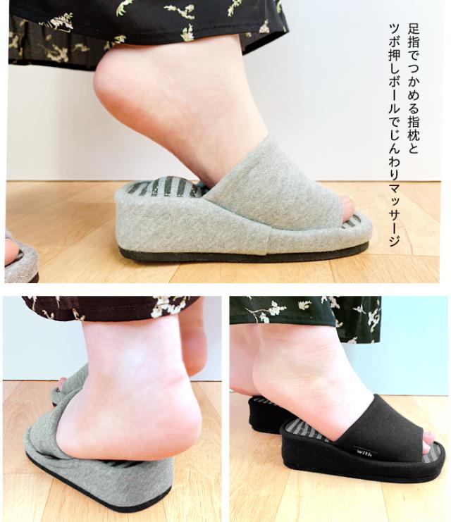 スリッパ with 美脚 厚底 足つぼ つぼ押し マッサージボール入り つま先立ち ダイエットスリッパ (ok-wd7904) 指枕 健康スリッパ 健康サンダル おしゃれ ボーダー ダイエットスリッパ レディース 女性 在宅勤務 会社 職場 ウィズ ルームスリッパ 前あき agesugi_sbe