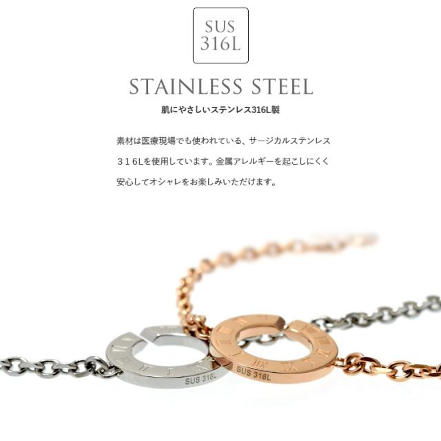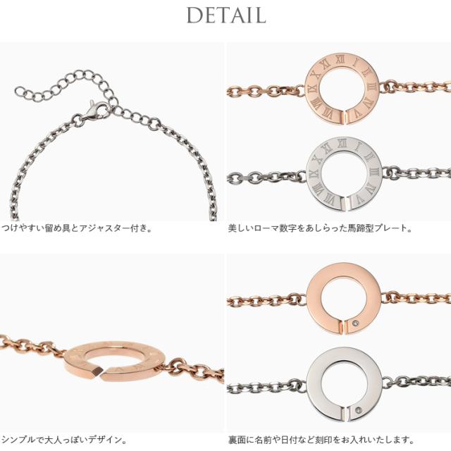ペアブレスレット 2本セット ステンレス 刻印無料 つけっぱなし 金属アレルギー 大人 シンプル ダイヤモンド インフィニティ ローマ数字 アトラス 馬蹄 ホースシュー スティールシルバーカラー ローズゴールドカラー (lstb008st_rg_pair)