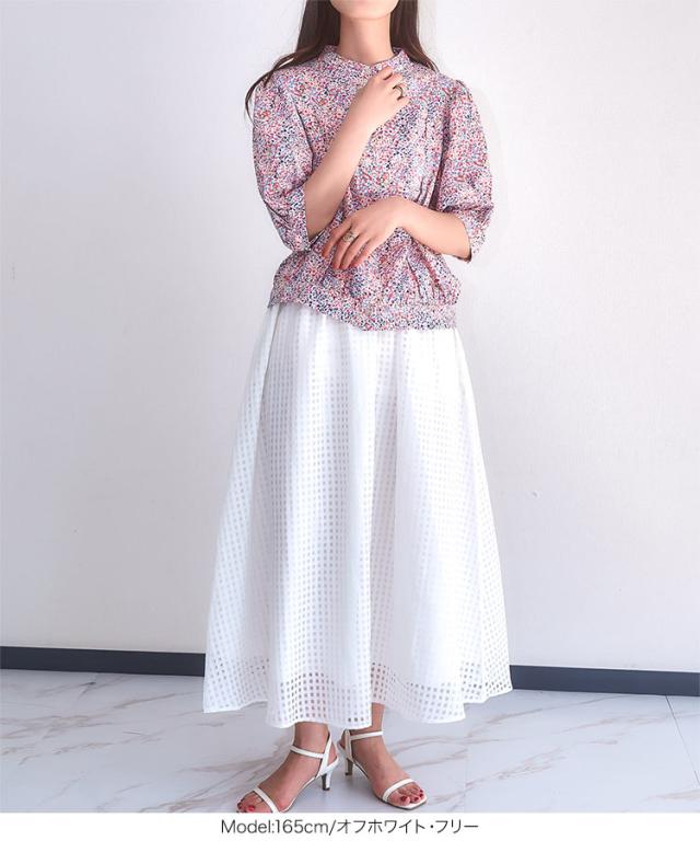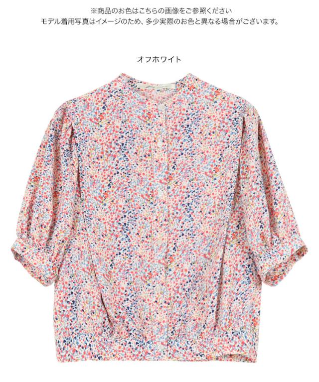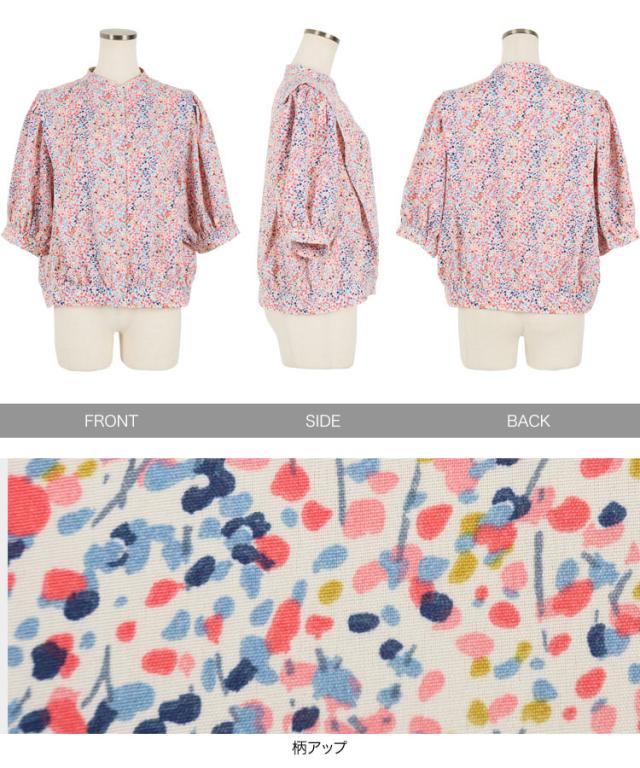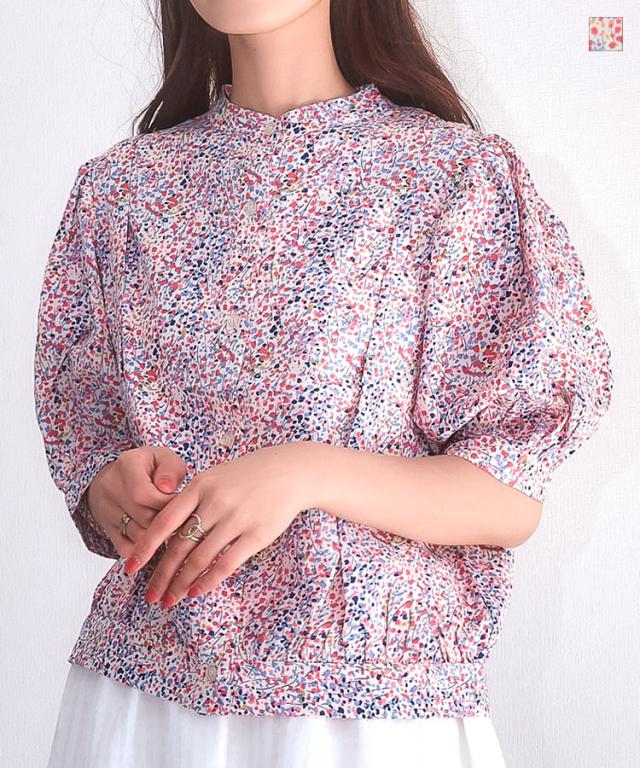 春新作 マルチ変形ドット柄ブラウス C5345 入荷済 OR プレゼント 通勤 ブラウス ドット 変形ドット ポップ カラフル 肘丈 五分丈 ボリュームスリーブ