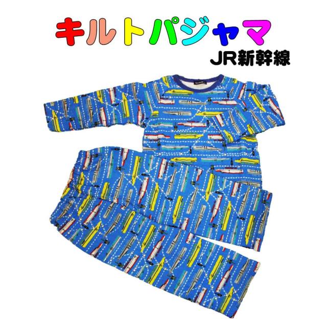 パジャマ キッズ ルームウェア ブルー×JR新幹線柄 長袖キルトパジャマ ハヤブサ コマチ TypeE956 ALFA-X ドクターイエロー 子供ジュニア ボタン付き 幼児 園児 小学生 110cm・120cm・130cm・140cm