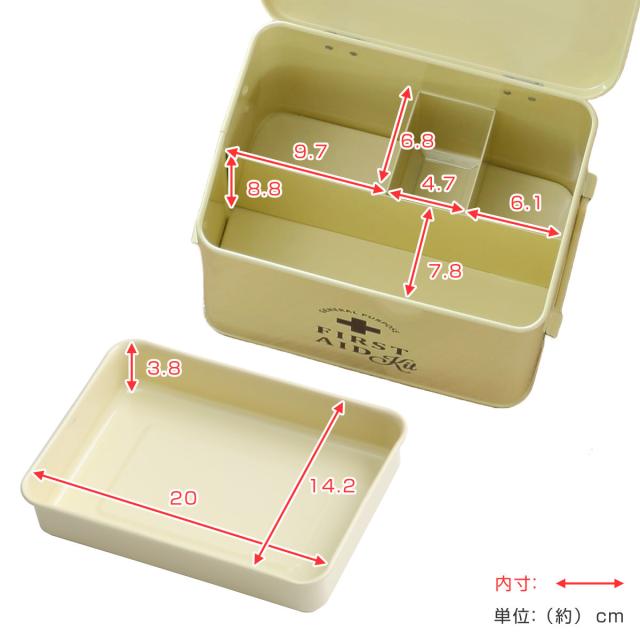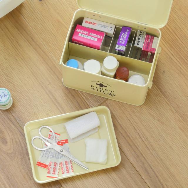 救急箱 ファーストエイドボックス Sサイズ 仕切り付き ( 薬箱 2段 缶 おしゃれ アンティーク 薬 収納 ボックス 持ち手付き 常備薬 医薬品 箱 ケース 薬入れ 新生活 BOX くすり クスリ かわいい 北欧 レトロ コンパクト 一人暮らし )