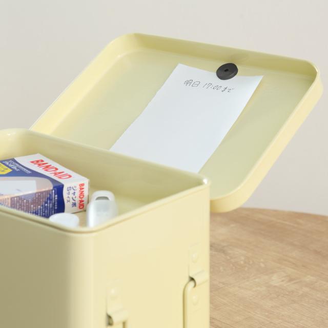 トレイと仕切りが付いているので、お薬以外にも文房具や小物、メイク道具や裁縫道具など細々した物をまとめるボックスとしても使えます。丈夫なスチール製なので、DIYで使う工具入れとしても最適です。