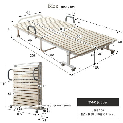 【13日0時〜P5%還元】 ベッド シングル 折りたたみ ハイタイプ ワイド すのこベッド 折り畳みベッド 湿気に強い 桐すのこ 桐 すのこ 33枚 傷がつきにくい キャスター 折り畳み 折りたたみ ベット 簡易ベッド 簡易ベット 耐荷重 300kg