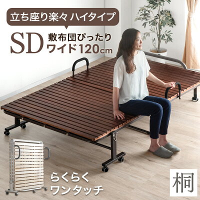 立ち座りらくらく 折りたたみベッド シングル ワイド ハイタイプ すのこ 湿気に強い 桐すのこ ベッド ベット 湿気に強い キャスター 低ホルムアルデヒド 低ホル