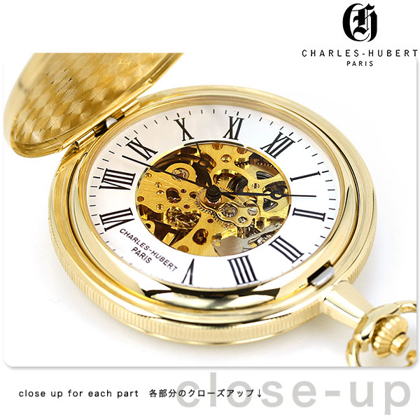 正規品 チャールズ ヒューバート 50mm ハンターケース 手巻き ユニセックス メンズ レディース 懐中時計 ポケットウォッチ CH-3789-G CHARLES HUBERT アナログ ホワイト×ゴールド ◆CHALES-HUBERT(チャールズ・ヒューバート)は、1992年フランスの宝飾デザイナーチャールズ・ヒューバートとアメリカのウォッチメーカーにより生み出された世界最大級の懐中時計ブランドです。熟練した時計製作の技術とレトロとモダンが調和したデザインが組み合わさることで、アメリカ・アジアを中心に時計を愛する多くの熱心なファンを獲得しています。 上蓋が付いているハンターケースタイプの懐中時計。記念日などの贈り物にもおすすめです。 機械式時計