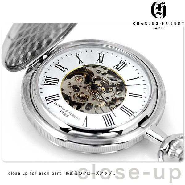 正規品 チャールズ ヒューバート 50mm ハンターケース 手巻き ユニセックス メンズ レディース 懐中時計 ポケットウォッチ CH-3789-W CHARLES HUBERT アナログ ホワイト ◆CHALES-HUBERT(チャールズ・ヒューバート)は、1992年フランスの宝飾デザイナーチャールズ・ヒューバートとアメリカのウォッチメーカーにより生み出された世界最大級の懐中時計ブランドです。熟練した時計製作の技術とレトロとモダンが調和したデザインが組み合わさることで、アメリカ・アジアを中心に時計を愛する多くの熱心なファンを獲得しています。 上蓋が付いているハンターケースタイプの懐中時計。記念日などの贈り物にもおすすめです。 機械式時計