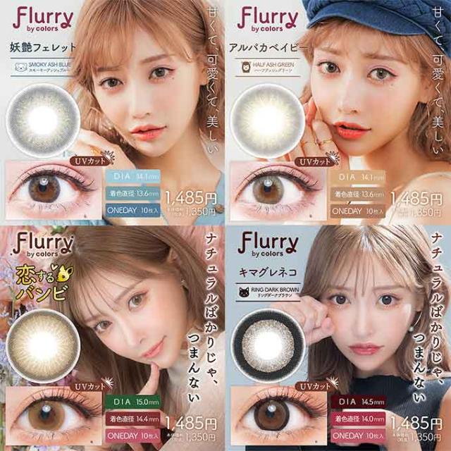 【20%OFFクーポン配布中!】(1箱10枚入)カラコン 1day フルーリー byカラーズ 度なし 度あり カラーコンタクトレンズ 15.0mm 14.5mm 14.1mm ハーフ ナチュラル 明日花キララ