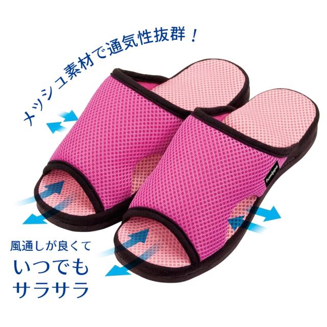 スリッパ レディース 足つぼ つぼ押し 健康スリッパ 健康サンダル さらさら メッシュ素材 通気性抜群 足裏 指圧 マッサージ ルームシューズ ルームスリッパ 室内用 会社 職場 在宅勤務 前あきスリッパ (af-7802) agesugi_snk