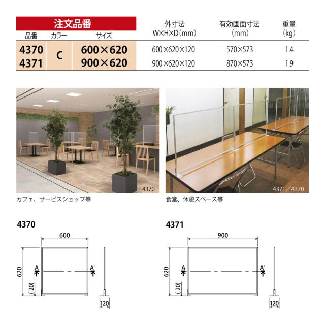 ・飛沫防止対策の簡易タイプ・卓上間仕切り、幅600mm、高さ620mmのパーテーション。
