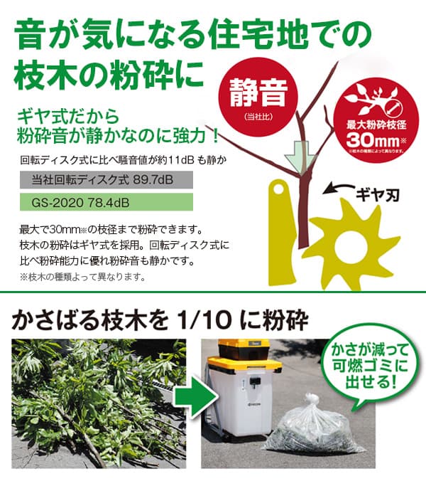 京セラインダストリアルツールズ ガーデンシュレッダー GS-2020 粉砕機 電動 ギヤ式 静音タイプ 車輪付き 家庭用 京セラ キョーセラ