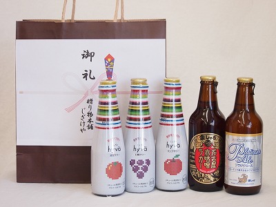 贈り物クラフトビールとリキュール5本セット(ヒュヴァ リンゴサワーalc.5% ヒュヴァ 巨峰サワーalc.5% ヒュヴァ 清見サワーalc.5% プラチナエール 名古屋赤味噌ラガー) 200ml×3本 330ml×2本