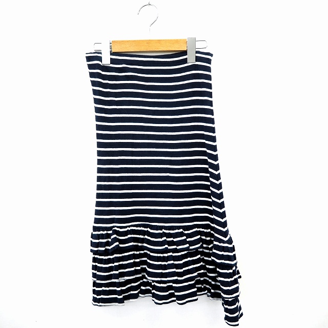 【中古】マーキュリーデュオ MERCURYDUO スカート ボトムス フレア ボーダー ひざ丈 コットン 綿 F ネイビー ホワイト