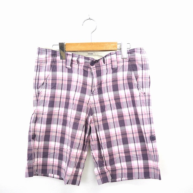 【中古】ユニクロ UNIQLO パンツ ボトムス ハーフ チェック ひざ丈 58 ピンク パープル 紫 /MT28 メンズ