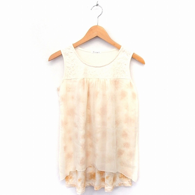 【中古】K cramp シャツ ブラウス レース 柄 丸首 ノースリーブ M ベージュ /FT35 レディース