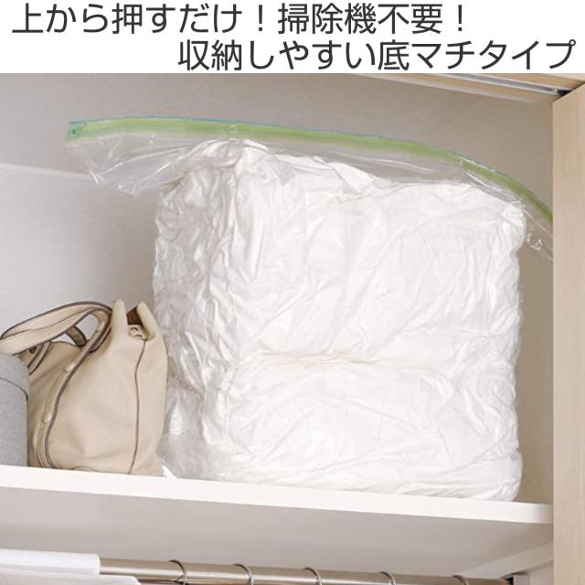 圧縮袋 L ふとん 掛け布団 シングル ダブル 掃除機不要 ( 収納袋 布団収納 布団 収納 クローゼット収納 マチ付き 押すだけ 手押し 棚上 底マチ 押入れ収納 布団用 羽毛布団 毛布 圧縮パック 簡単圧縮 衣替え )