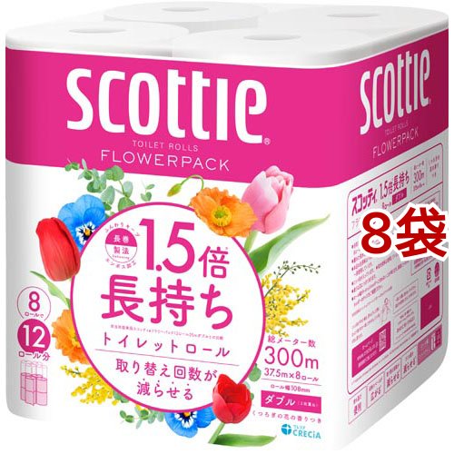 スコッティ フラワーパック 1.5倍長持ち トイレットペーパー ダブル(37.5m×8ロール×8袋セット)[トイレットペーパー ダブル]