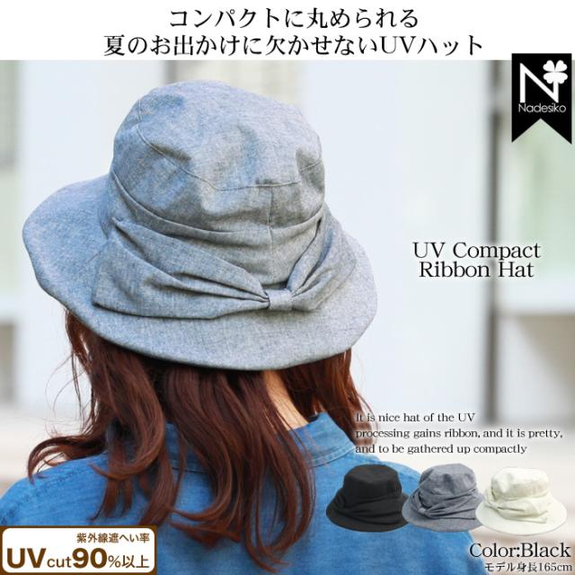 コンパクトリボンハット uv 帽子 後ろリボン付きハット UV 紫外線カット ハット 帽子 裏側メッシュ コンパクト 調節 春夏 あご紐付き ツバワイヤー入り 母の日 プレゼント 実用的