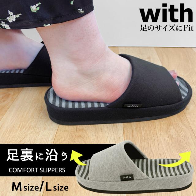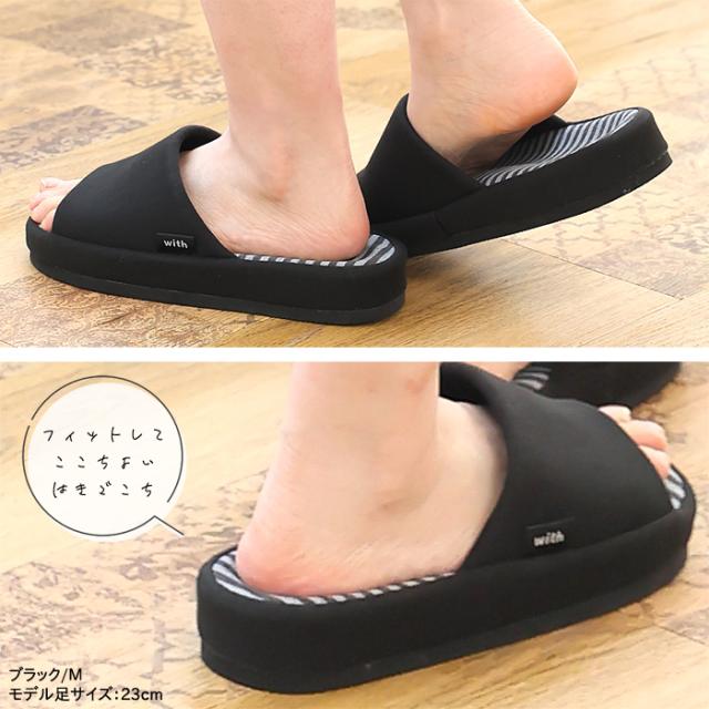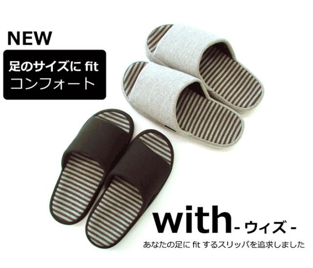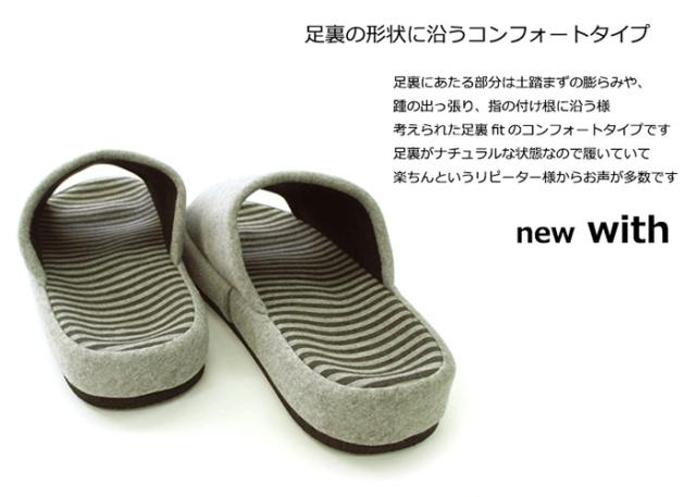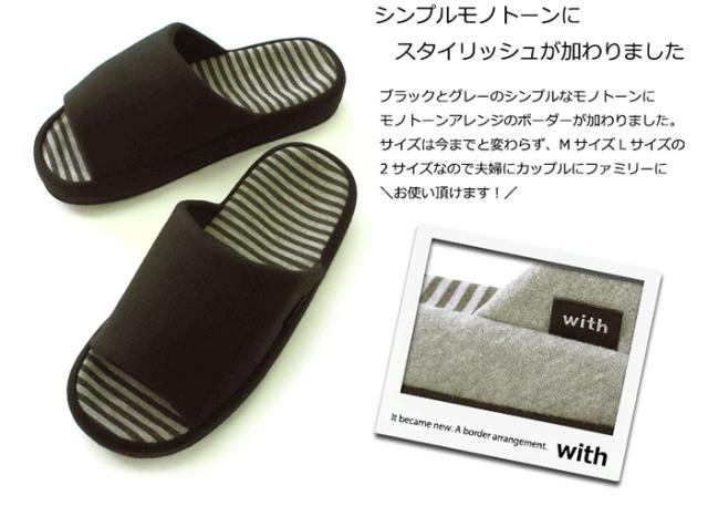 スリッパ 足にぴったりfit おしゃれ ボーダー with コンフォートスリッパ レディース メンズ (ok-wk7900) 部屋履き 会社 職場 在宅勤務 来客用 ウィズ ルームシューズ ルームスリッパ お洒落 前あき 足裏にフィットする形状スリッパ agesugi_snk