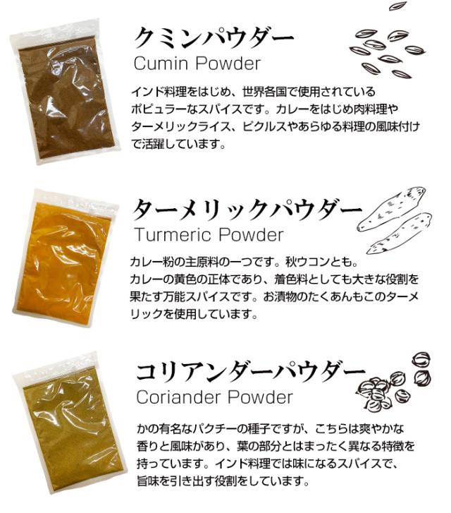 スパイス定番セット(各100g×3種類) 【ゆうパケット送料無料】(コリアンダー, ターメリック, クミン) パウダー 神戸スパイス