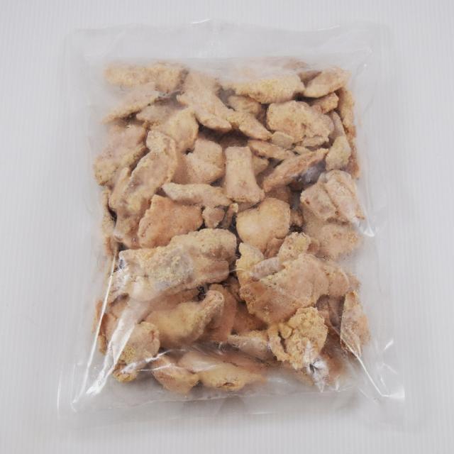 ○原材料:豚ガツ(国産)、でん粉、乾燥パン粉、にんにく、食塩、粉末しょうゆ、砂糖、香辛料、酵母エキス、小麦たん白、大豆粉、みりん、しょうゆ、たん白加水分解物/pH調整剤、調味料(アミノ酸)、酵素、酸化防止剤(V.C)、(一部に小麦・さけ・大豆・豚肉を含む)