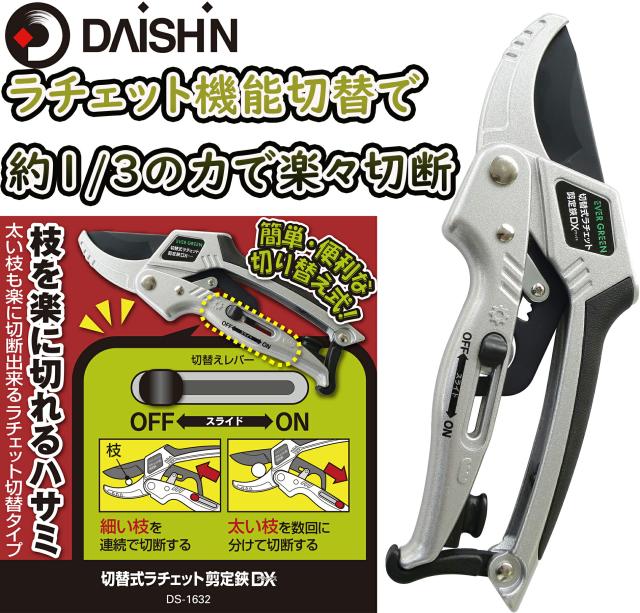 VERGREEN 切替式ラチェット剪定鋏DX【大進 送料無料 園芸 ガーデニング 農業 女性 庭 農作業 家庭菜園 用具 工具】