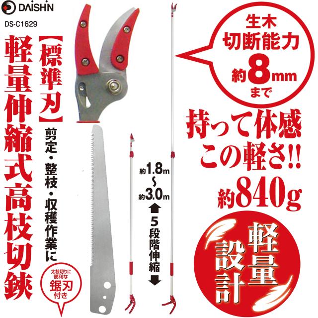送料無料 大進 軽量 標準刃 高枝切りバサミ 3m 高枝切鋏 剪定鋏 ノコギリ付き高枝切りバサミ 高枝 はさみ 高枝切り狭 枝きりばさみ 高枝切ばさみ 剪定 高枝切り 伸縮 はさみ 剪定鋏 高枝鋏 枝切 ハサミ 軽量鋏 女性用 軽い 高枝 のこぎり 高枝切りノコギリ 軽量 お手軽 長い