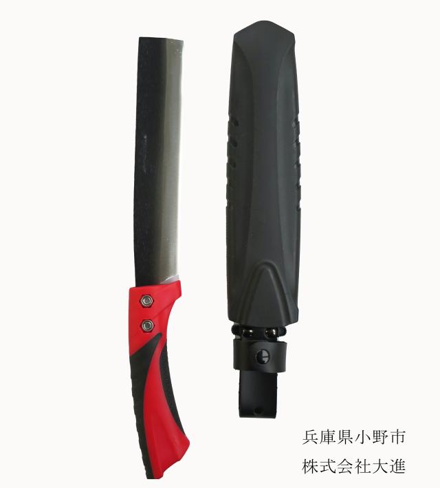 鞘とベルト取付けパーツも付属し、持ち運びや保管に便利です。