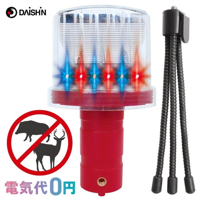 赤と青のLEDが交互に点滅し、害獣の警戒心を刺激して追い払い、