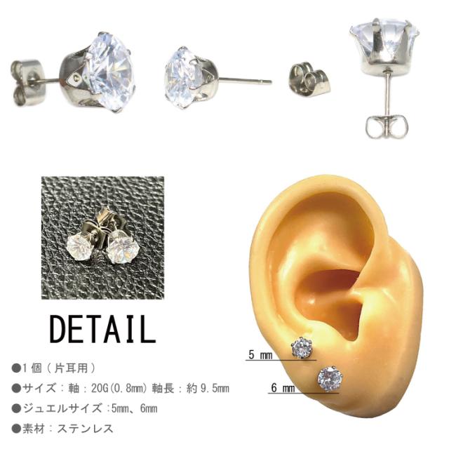 【メール便対応】ジュエルピアス クリスタル 5mm 6mm 20GA(0.8mm) キャッチピアス ステンレス製 立爪【 6本爪 片耳用 ジュエリー ボディピアス ラインストーン キラキラ ピアス アクセサリー シンプル スタイリッシュ クリア】┃