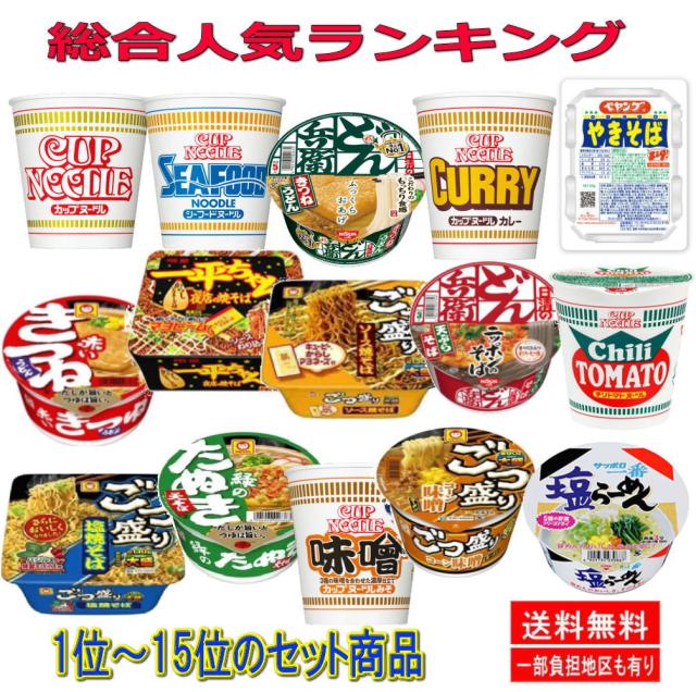【リニューアル】 レギュラーサイズ カップ麺 人気ランキング15選 お手軽 半月 セット15食 関東圏送料無料
