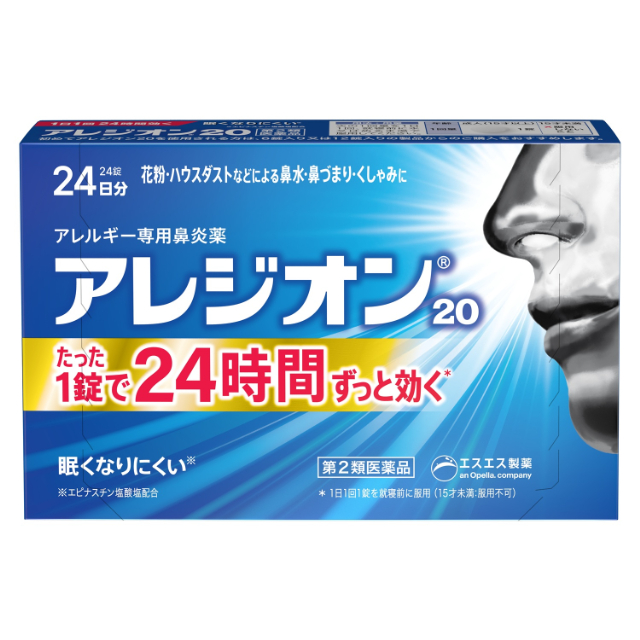 商品名 第2類医薬品 アレジオン20 24錠 セルフメディケーション税制対象商品 エスエス製薬 容量 24錠 JANコード 4987300060063 メーカー エスエス製薬 カテゴリー 医療・介護・医薬品>医薬品>鼻炎薬>鼻炎薬【第一・二類医薬品(指定第二医薬品含む)】 効果・効能 花粉、ハウスダスト(室内塵)などによる次のような鼻のアレルギー症状の緩和:鼻みず、鼻づまり、くしゃみ 用法・用量 次の1回量を1日1回、就寝前に水又はぬるま湯で服用してください。