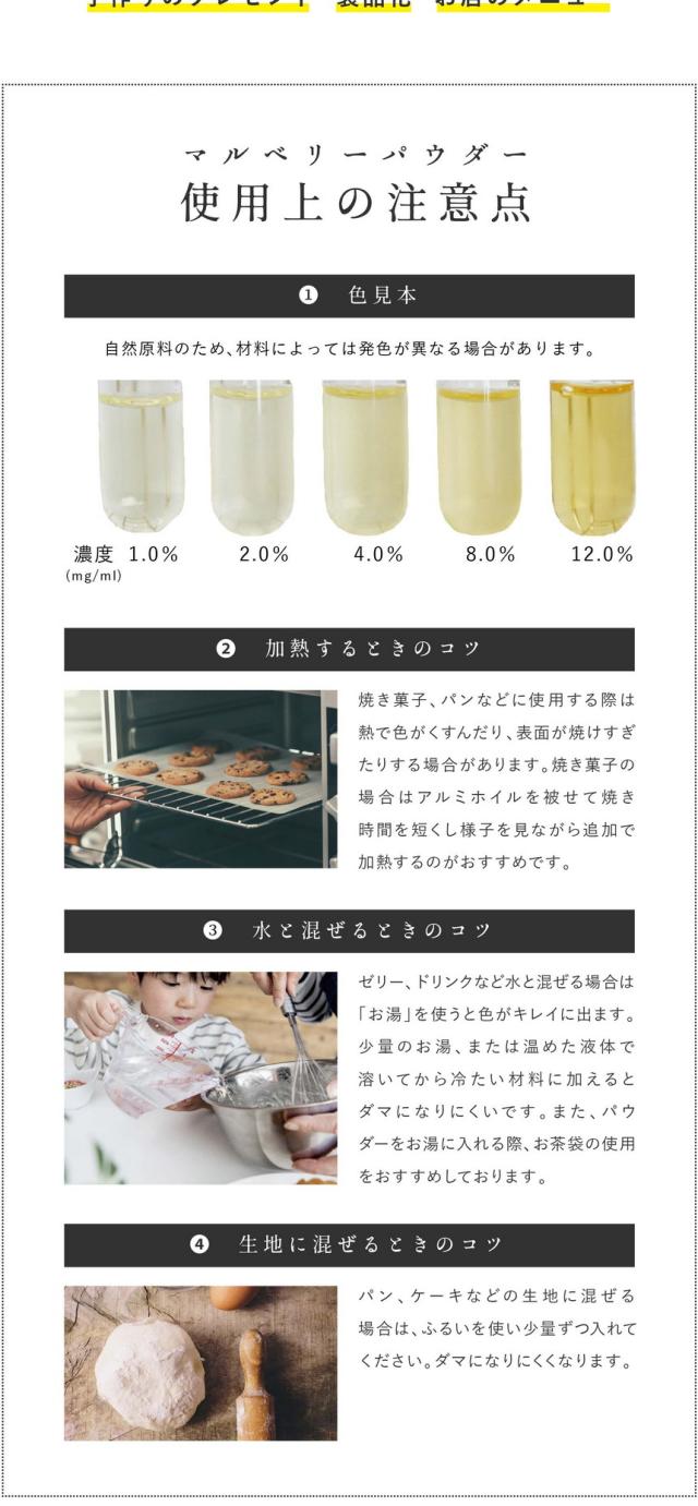 | 注意事項 | ●シリカゲルを封入しておりますので、誤ってお召し上がりにならない様ご注意ください。 ●天然物の為、収穫時期によって色の違いが出る場合がございます。 ●天然の色素の為、熱を加えすぎたり、強い光の下で放置すると退色する恐れがあります。 あらかじめご了承の上、お買い求め下さい |