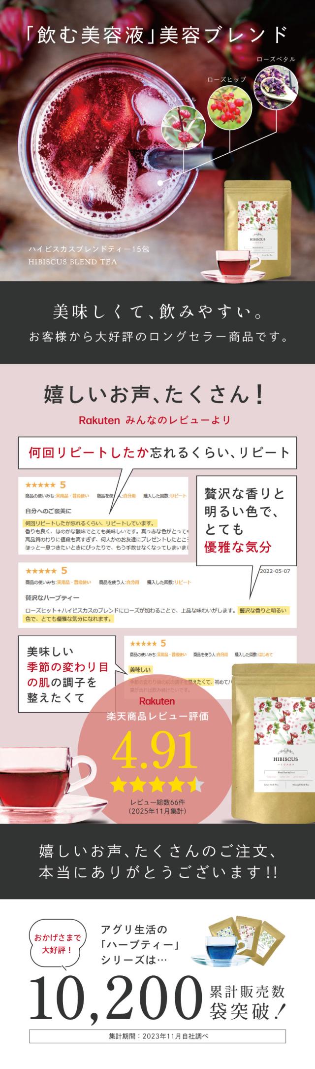 ハーブティー ハイビスカスブレンドティー 15包 ハイビスカス ローズヒップ ローズペタル ブレンドティー ノンカフェイン ビタミンC