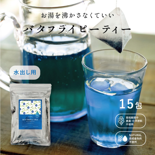 お湯いらずで手軽に作れる「水出し専用」バタフライピー15包。