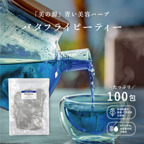 ハーブティー バタフライピー 100包 ティーバッグ 青いお茶 青いハーブティー 無着色 無香料 ノンカフェイン 日本最終加工 送料無料