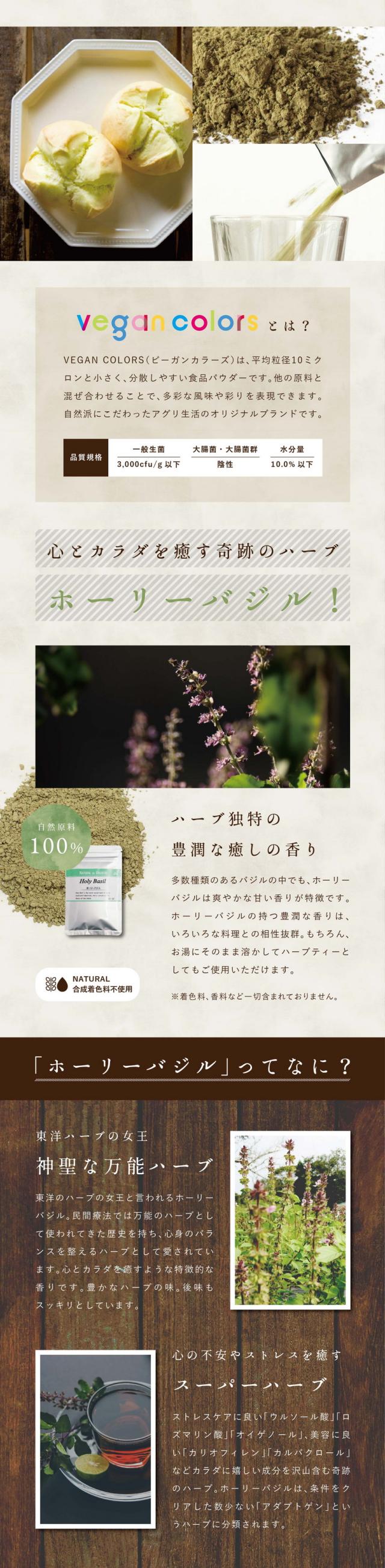 東洋ハーブの女王と呼ばれる「ホーリーバジル(バナ種)」を使用した香り高い食品パウダー。