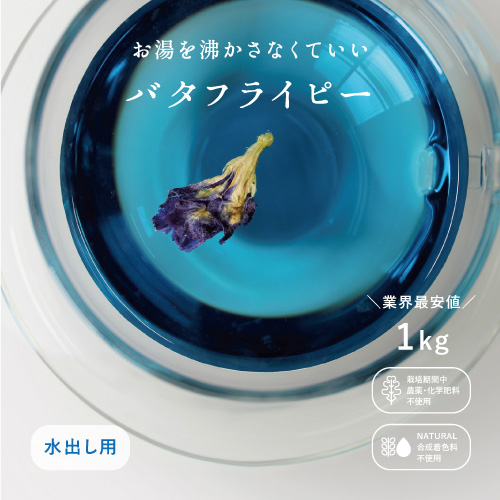 【業務用】殺菌済みバタフライピー【水出しホール1kg】 バタフライピーティー 蝶豆 青いお茶 青い花 アンチャン 乾燥花 キャッシュレス 還元